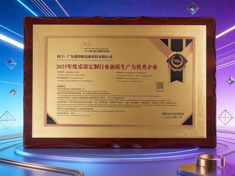 “2025年度桌游定制行业新质生产力优秀企业”荣誉,是对森特sengtor科技创新实力的权威肯定。作为国家高新技术企业与专精特新中小企业,森特sengtor手握超150项知识产权,持续推动产品功能与材料的迭代升级。